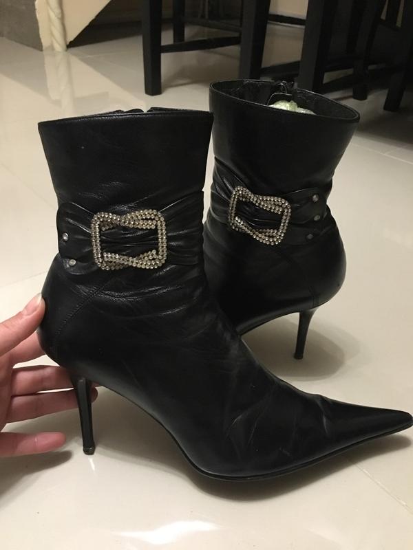 Чобітки елегантні, натуральна шкіра, оздоблені прикрасою.