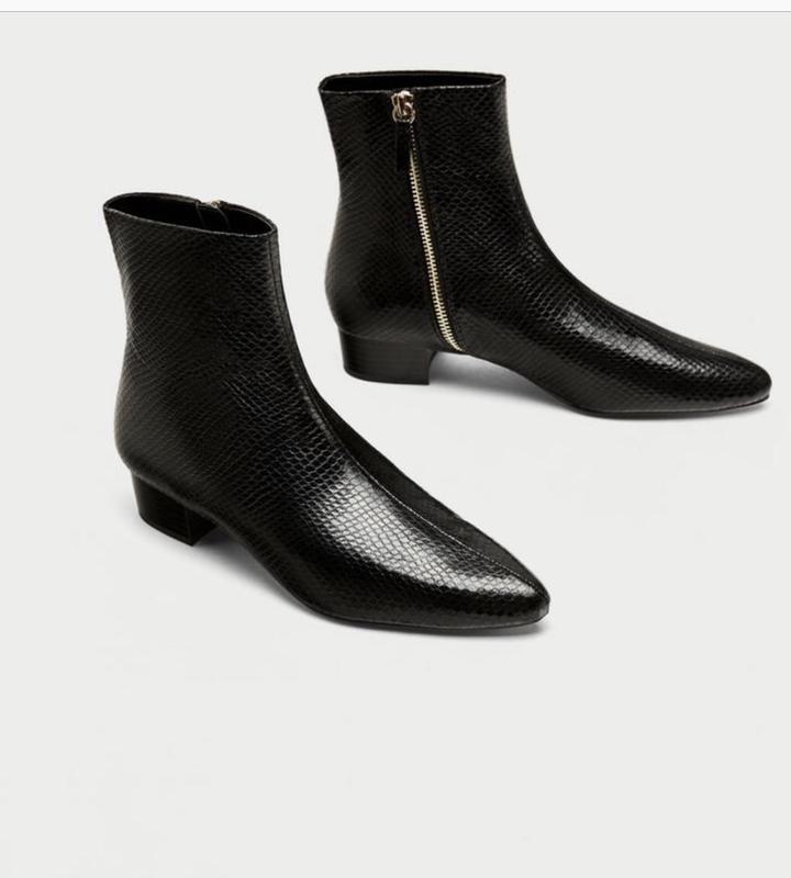 Очень крутые кожаные ботинки zara, с эффектом змеиной кожи