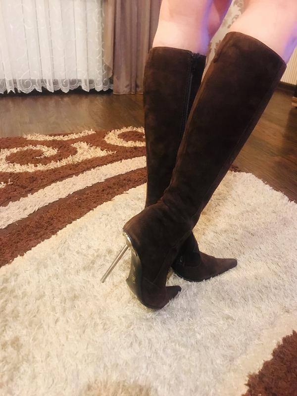 Шикарные сапоги- Италия, производитель говорит сам за себя, размер указан 35 идут 36 .Сапожечки из мягусенькой выворотки с устойчевым каблучком и удобной колодкой. Замша в идеальном состояние, нет никаких дефектов, в реальности намного красивее. В Украине не купишь! {не забывайте замша разнашивается}