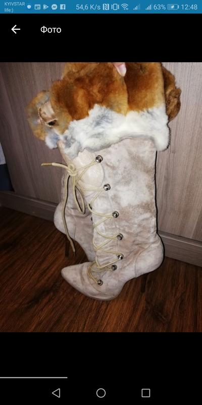 Натуральная замша и мех, весна-осень. Размер 37,но можно на 38 (узкую). Набойки новые,змейки рабочие. Из нюансов - не хватает одного камня, требуют мойки и чистки(на последнем фото все видно). Они шикарны! Покупала в Теме очень дорого. Причина продажи- перестала носить каблук.