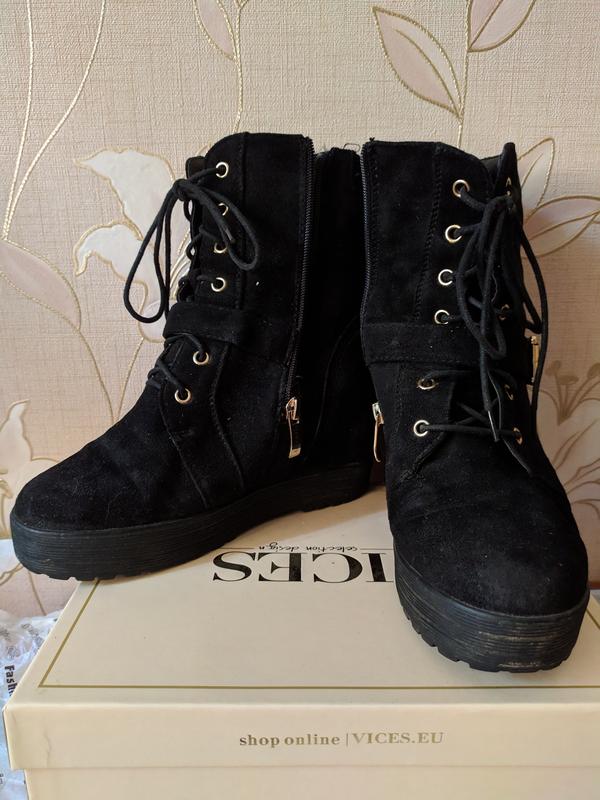 Ботинки осенние/зимние замшевые на шнуровке и молнии