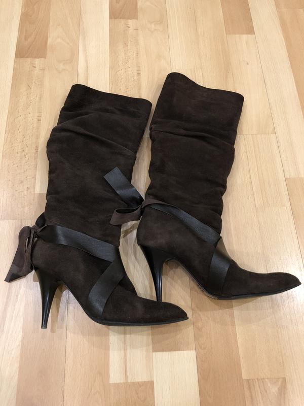 Чоботи зимові, розмір 37,5. Натуральний замш, всередині овчина. На вузеньку ніжку
