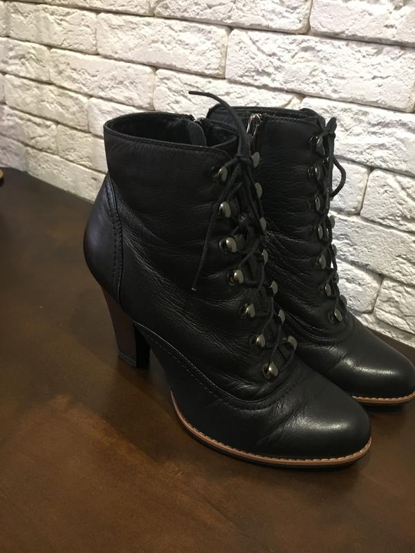 Стильные женские ботинки, ботильоны, сапожки. Натуральная кожа, мягкие, очень удобные.Состояние очень хорошее( есть один дефект на каблуке на внутренней части, при носке вообще не заметно). Размер 37. Высота каблука 9 см.