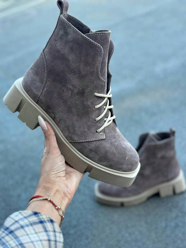 36-41 рр деми/зима ботинки на платформе натуральная замша/кожа черные, капучино, бежевые