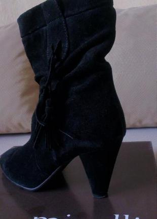 Продам б/у черевики на підборах ТМ Minelli. Куплені ще кілька років тому, взувалися 3 рази! В прекрасному стані, злегка подтертая набійка, чорна натуральна замш, оригінальна взуття італійського бренду Minelli, є рідна коробка від них. Підкладка текстиль, ноги не фарбує, устілка шкіряна чорна, розмір 40, дуже стильні (зручна колодка), устілка 27см. Перебуваю в Києві, при бажанні можемо обумовити примірку, також можу переслати по Україні Новою Поштою або будь-якою іншою службою доставки на умовах передоплати, деталі при переписці. Чудово виглядають на ніжці, відмінно підійду під класичне вбрання або casual style!