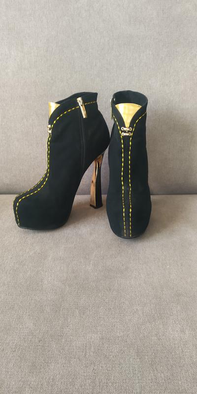 Виповненні зі штучного нубуку. декоровані золотистими вставками та таким же швом. всередині прихована танкетка. зручні. на ніжці виглядають шикарно