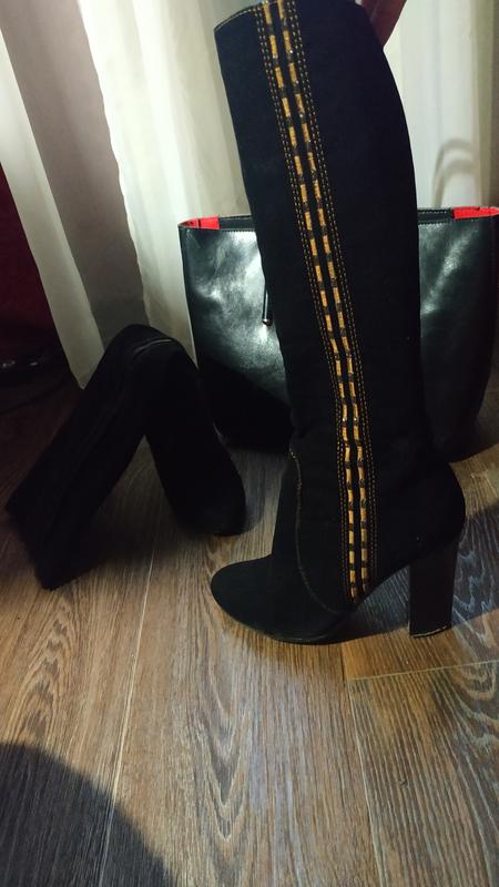 Сапожки, на ножке смотрятся бомба. Состояние отличное, единственное, на каблучке нужно поменять набойки (стоят родные). Идут на размер 35.5, 36. Материал: экозамш.