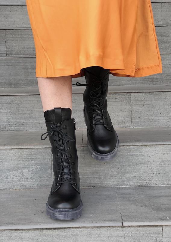 Стильные высокие сапоги черного цвета. Верх - натуральная кожа. Подкладка - итальянская байка.