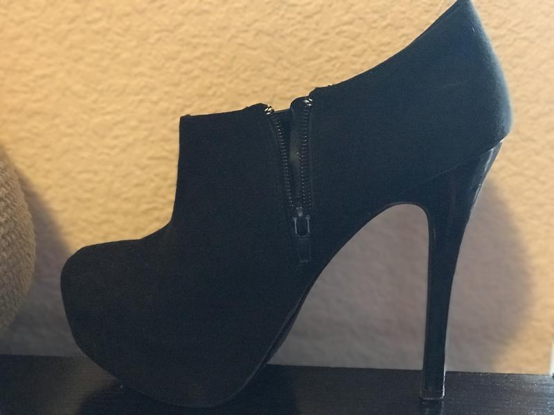 Замшевые ботильоны чёрного цвета на высоком каблуке. Без дефектов.