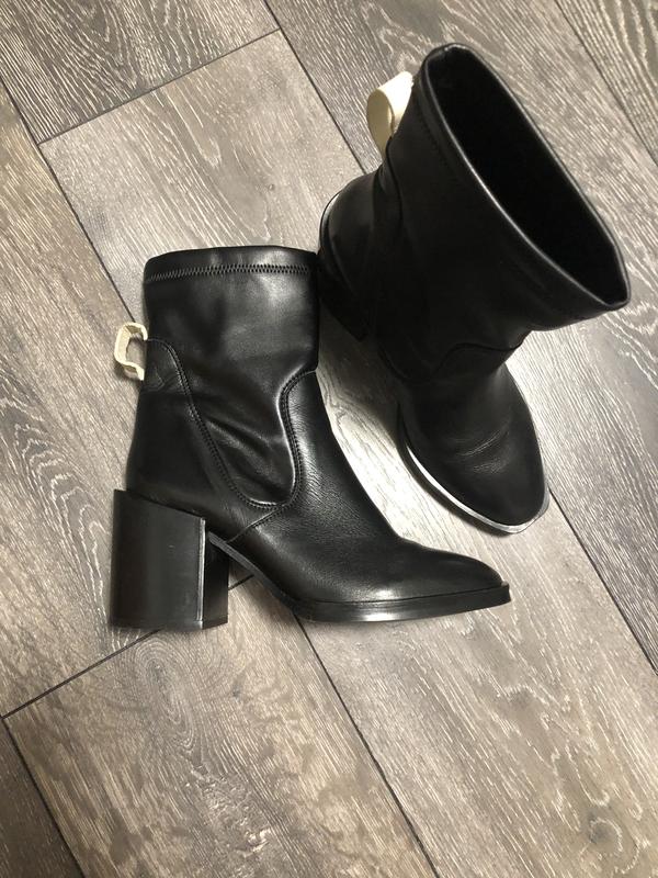 Очень крутые кожаные ботинки из Испании. Комбинированной формы носок. Толстый удобный каблук 8,5 см{есть не глубокие царапинки, можно закрасить кремом, сделала фото как выглядит без крема. Снизила цену кардинально}. Качество на высоте. Размер 37, на стопу 24см. Модно, стильно, качественно, оригинально.