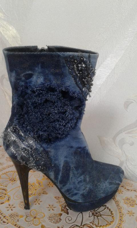 Джинсовые ботильоны размер 36. Высота каблука 12 см. Танкетка 3 см. По стельке 23,5 см.