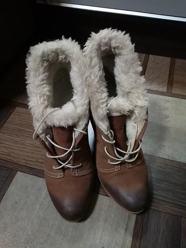 Хорошие ботиночки на невысоком каблуке.Верх натуральный-нубук,замш.Мех искусственный.По стельке 24,5-25 см