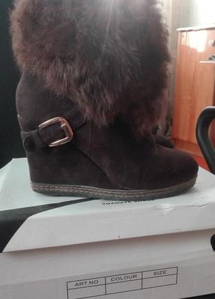 зручні черевики на танкетці з хутром зайчика, довжина устілки 23,5 см висота танкетки 9см, один дефект на останньому фото.
