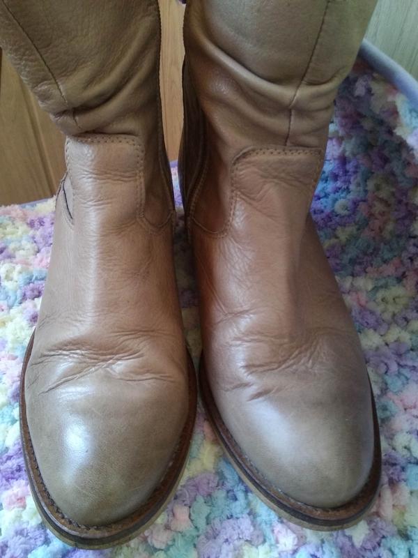 Приличные очень удобные серо-бежевые ботильоны на устойчивом каблуке. Длина подошвы снаружи 26 см. В самом широком месте подошвы 10 см Мягкая качественная натуральная кожа. Каблук 4 см. Верх голенища 15,5 см. Высота от верха ботинка до низа каблука 20 см Обувались один раз - великоваты оказались.