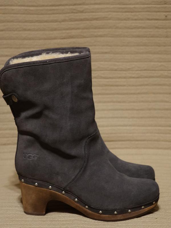 Отличные темно-серые цигейковые сапожки на деревянном каблуке ugg australia сша 37 р.