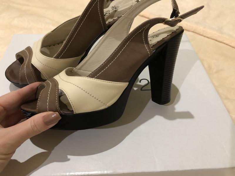 Красивые босоножки, на устойчивом каблуке. Одевались всего несколько раз, каблук без следов носки. Высота каблука 10 см, размер 38, кожзам.