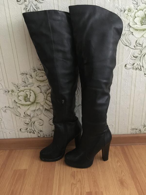 Чорні ботфорди в ідеальному стані. На широкі ноги підходять . Дуже гарні і стильні. Недоліків ніяких немає. Розмір 39 устілка 25, каблук 12 см Дивись на інші мої оголошення, є нове і б/в взуття і одяг батал. Звертайся, якщо брати дві одиниці чи більше буде звичайно знижка)