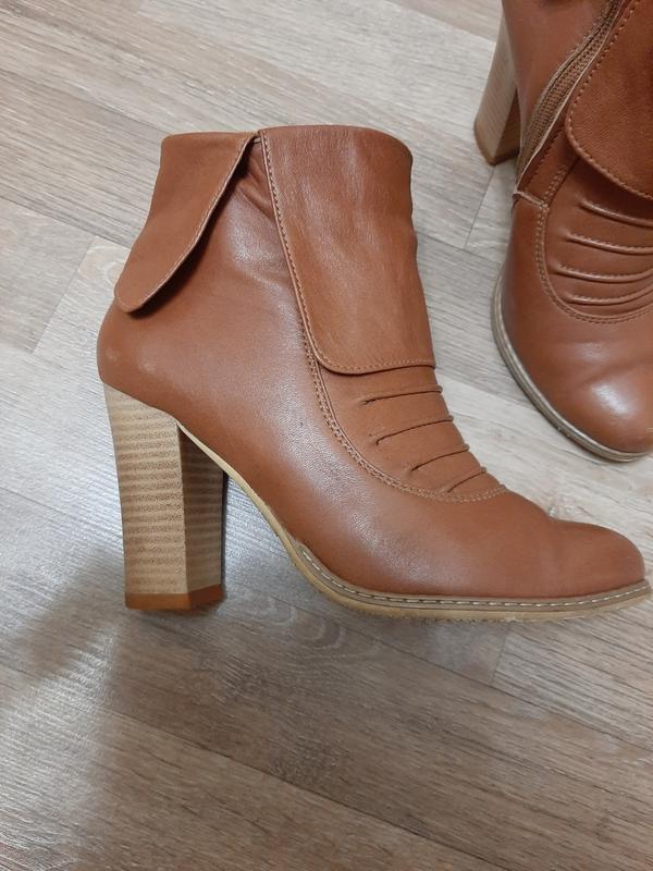 Ботинки из натуральной кожи, внутри флис, устойчивый каблук 9,5 см, удобная колодка. Стелька 24,5 см. Набойки поменяны сразу после покупки. Состояние отличное. Кое где есть маленькие царапинки, заметны только при близком рассмотрении.