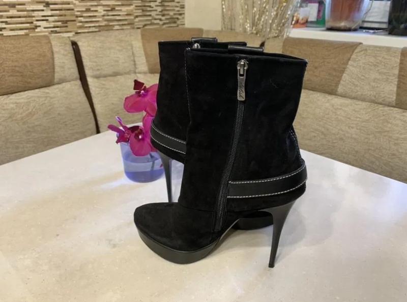 Ботинки осень, дорогой турецкой фирмы, натуральный замш, одеты один раз, по фото видно!!! Каблук 13 см , платформа 3,5 см, набойка родная. Размер написано 38, но подойдут на ножку 37-37,5 24-24,5 см, на узкую ножку! Стоили 80$