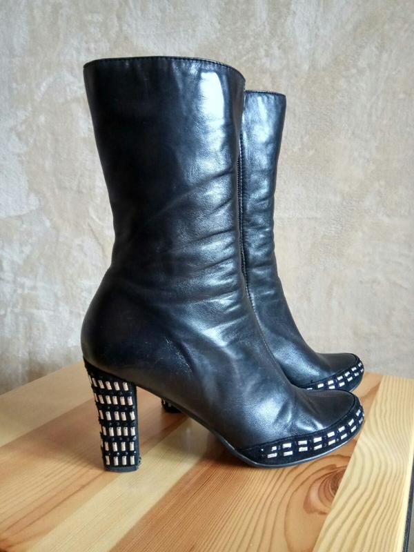 Демисезонные ботинки Malanee чорного цвета, носок и каблук украшены металичесскими вставками и черными стразами 38 размер, каблук 9см, требуют замены набоек, немного носились, внутри замок.