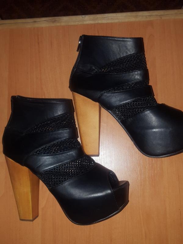кожзам, сетка, деревянные каблуки, на ноге очень красиво