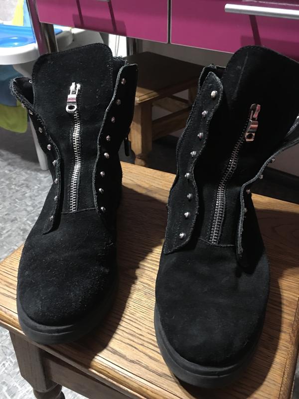 Натуральный замш! Носили активно ! Хорошенькие ! Р 38, минус: расходится одна змейка , фото прикрепила, дыр нет