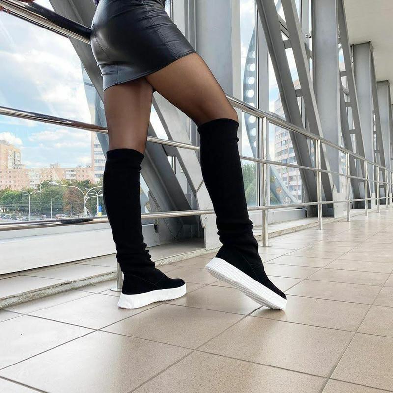 Верх виробу: натуральна замша, панчіх - текстиль {напіввовна в 2 шари}. ☝️Висота виробу без підошви 55см. ☝️Підкладка: демі байка/ зима європейка {хутро по щиколотку ПШ + 70 грн ☝️Кольори: сірий, чорний, бордо, пудра. ☝️Розмірний ряд: 35-41 в розмір. ☝️Підошва: поліуретан чорна і біла, легка, зносостійка, висота 3-4 см Зима + 70 грн ❄️