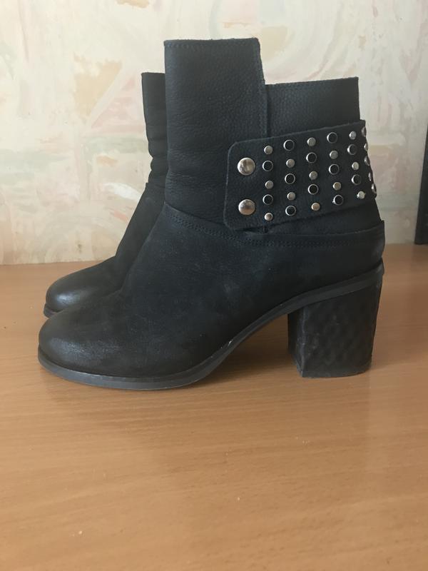 Демисезонные чёрные ботинки, кожа, каблук 6 см. Размер 40. Португалия