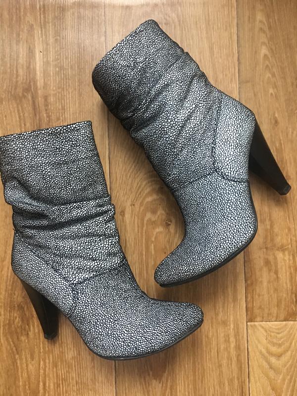 Натуральна шкіра,всередині байка,не значні сліди шкарпетки,на худеньку ніжку з не великим піднесенням,по устілці 23,5 див. Каблук 10см.