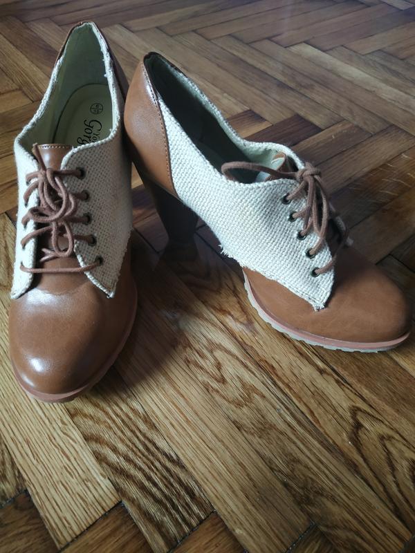 Стильні черевички зі вставкою ллянної тканини . Хороший замінник . Стійкий каблук