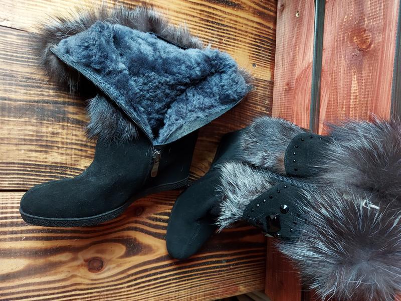 Фирменные сапожки, натуральный замш, танкетка, натуральный мех , размер 36. В отличном состоянии, очень теплые.