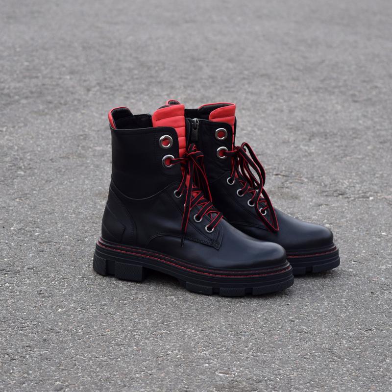 Ботинки демисезонные из натуральной кожи черного цвета. На шнурках и молнией сбоку. Высота ботинка от пола 22 см. Каблук 4,5 см. Невероятно стильные и удобные. Потрясающе смотрятся на ножке. Размеры:36(23,5см),37(24см),38(24,5см),39(25см),40(25,5см). Турция.