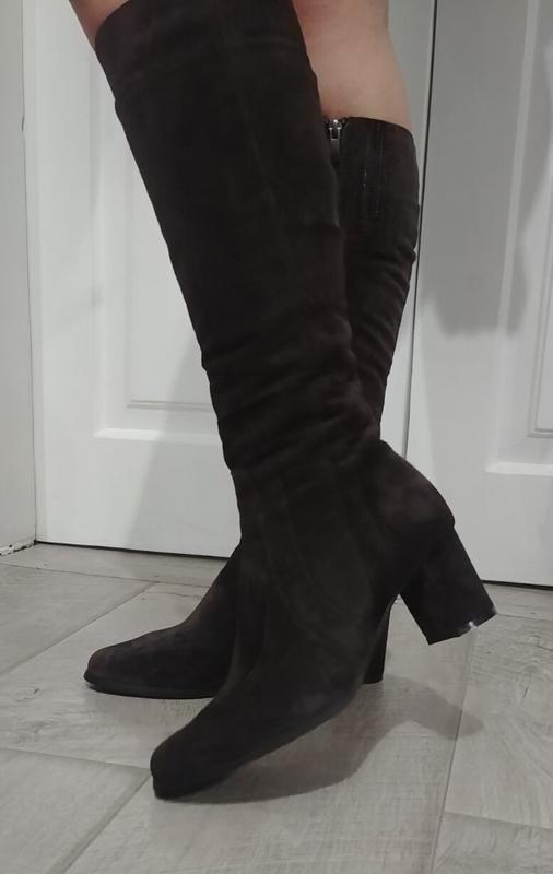 Сапоги из натурального замша ,красивый коричневый цвет.каблук обтяжной,устойчивый 6см.удобная колодка.длина по стельке 27.5см.