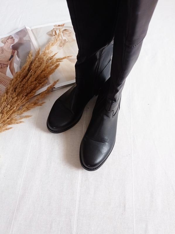 чорні високі чоботи від Anesia збоку на замку, демисезон, матеріал еко шкіра, розмір вказано 36, довжина устілки 23.5 см, каблук 3.5 см, висота 35 см