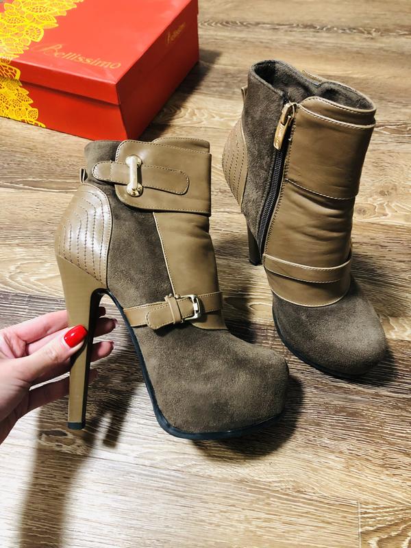 Замшеві ботильйони зі вставками зі штучної шкіри Полномерный 37 розмір Трішки утеплені. Каблук 13 см, є прихована платформа Трохи відклеїлася тепла тканина на устілці, без проблем можна підклеїти