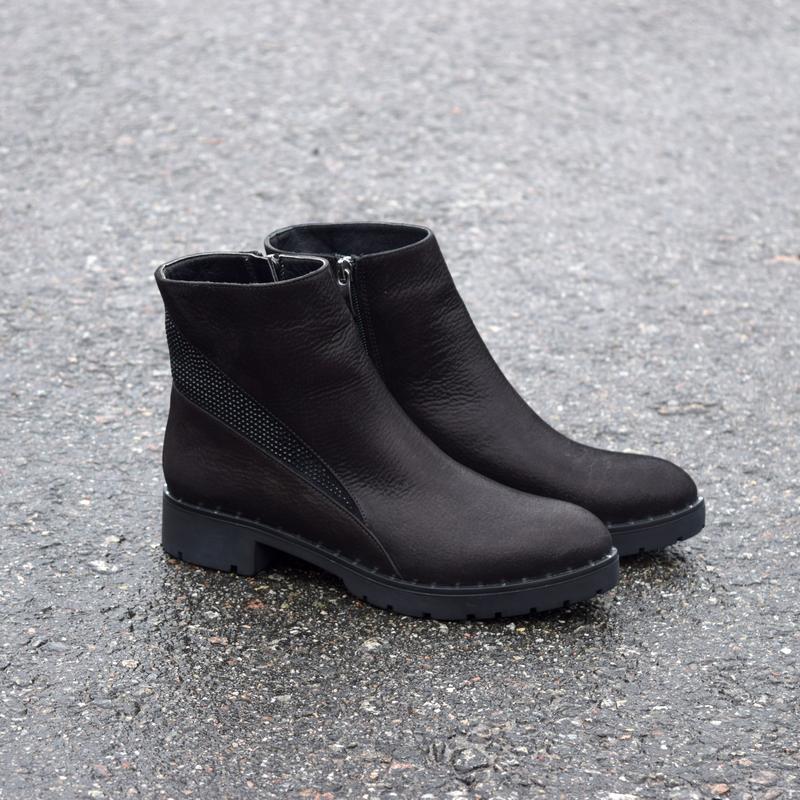 Ботинки демисезонные из натуральной кожи сатин черного цвета Сбоку молния. Высота ботинка от пола 18 см. Каблук 3,5 см. Невероятно стильные и удобные. Замечательно смотрятся на ножке. Размеры:36(23,5см),37(24см),39(25см). Турция.