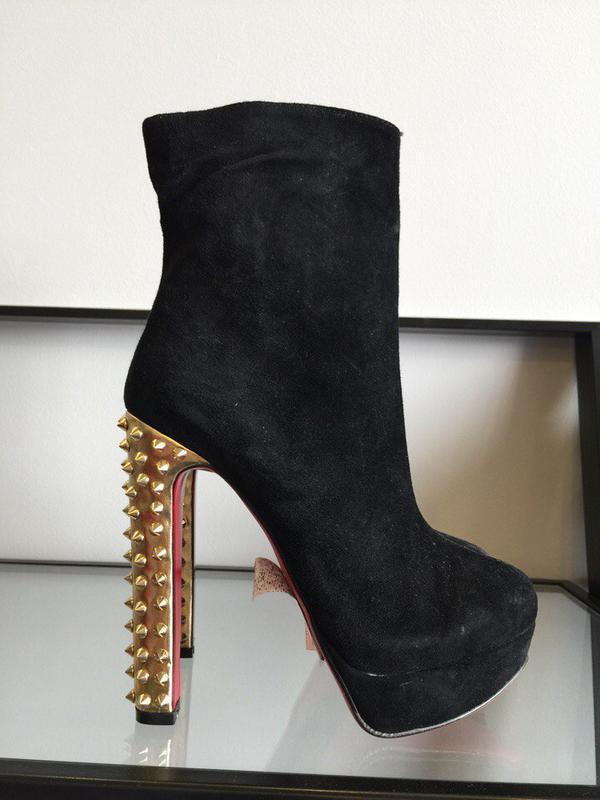 новые но есть дефект на каблуке при транспортировке. фото по требованию дорогие новые замша написано 40р идут нам 25 см стелька.есть дефект при транспортировке в цене учтено