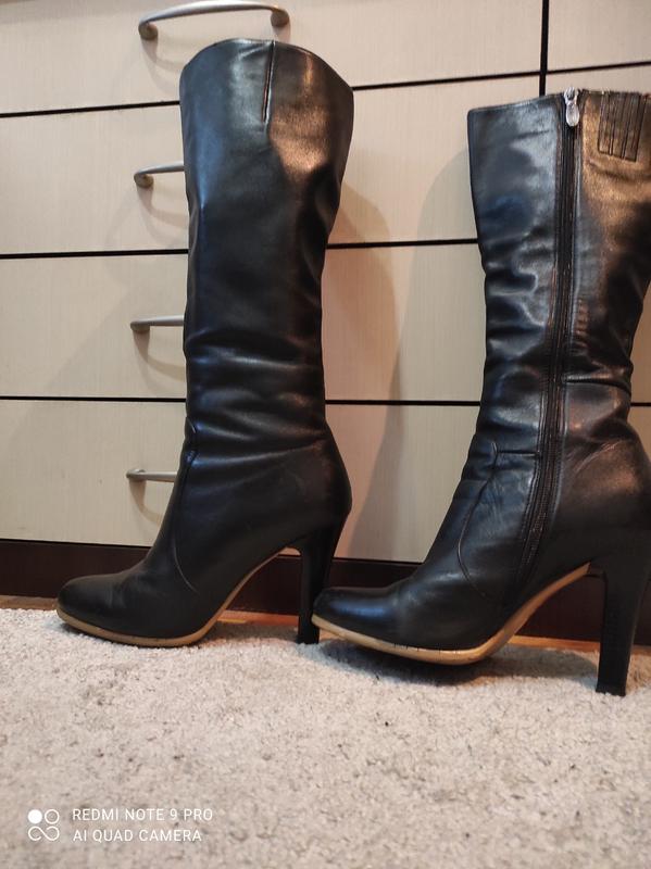 кожаные сапоги, высота каблука 9 см