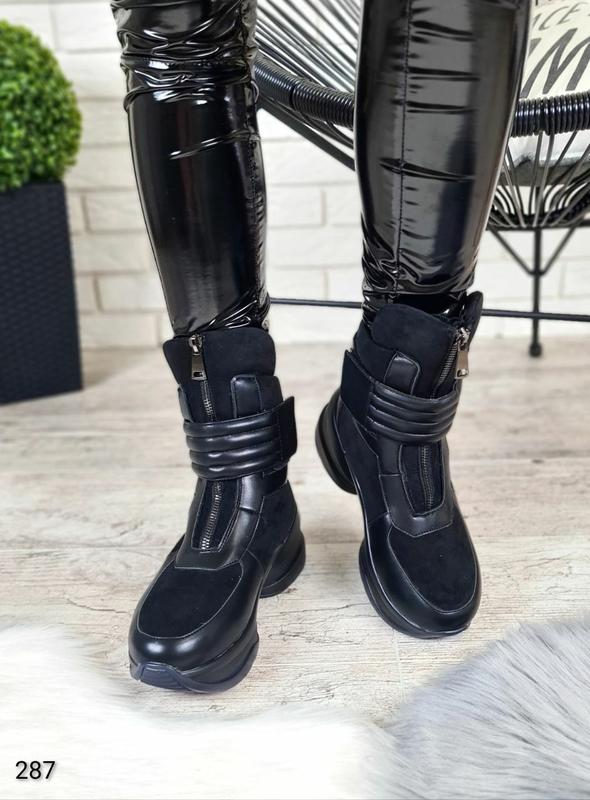 ❤❤❤СНОВА В НАЛИЧИИ❤❤❤ Код 287 Ботинки зима ❄ цвет: BLACK материал: экокожа/экозамш внутри экомех высота от верха до пятки 12 см высота ботинка спереди 20см подошва сзади 7см подошва спереди 4см доступны с 36 по 41 размер в размер