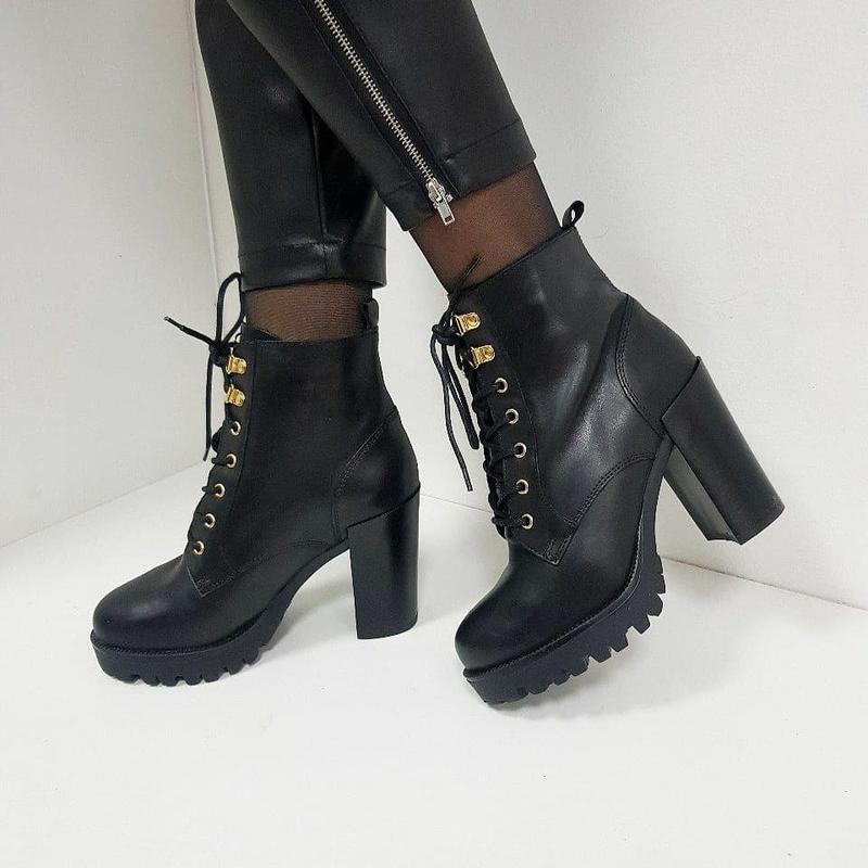 Стильні черевички з натур шкіри, каблук 11см, танкетка 2.5см, устілка шкіра, всередині штучне хутро