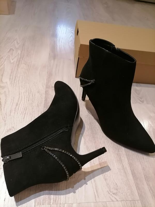 Оригинальные ботиночки известного бренда из эко замши, в 37 размере, украшены цепочкой с камушками, очень красиво смотрятся на ножке :)