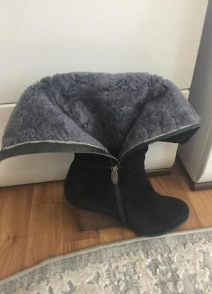 Зимові чоботи на танкетці з дерева. Висота танкетки 9,5 см, довжина устілки 25, 5 див. Всередині дуже теплий натуральний хутро овчини. Об'єм халяви 16 див.