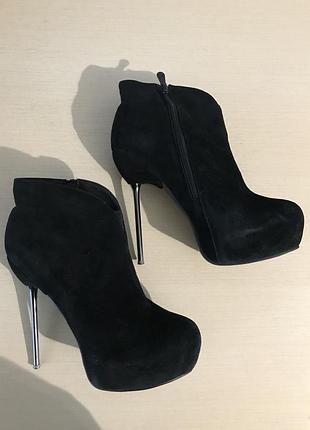 Чорні,натуральний замш В хорошому стані Каблук-шпилька Стійкі Шпилька 14 см Можливий торг😜