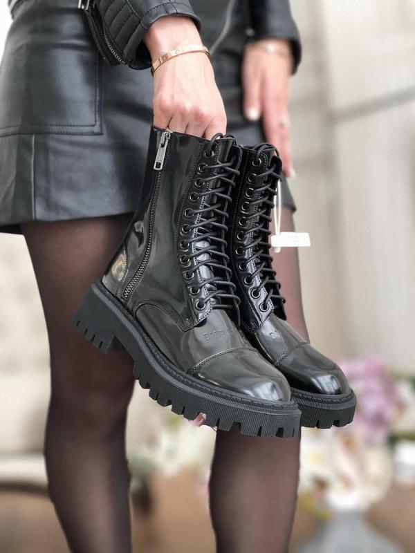 -размеры в наличии 36,37,38,39,40 -демисезон -натуральная тельячья кожа -тисненый логотип сверху -брендированная фурнитура -толстая резиновая тракторная подошва -шнуровка спереди -видимая прострочка в тон -изделие поставляется с чехлом для хранения, документами и коробкой арт. 6