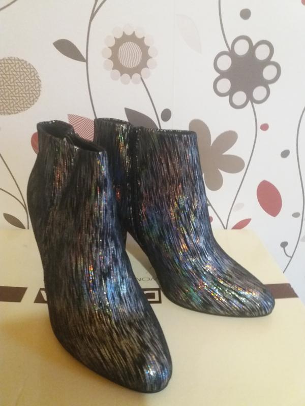Ботильоны - серебристо-черного цвета с разными переливами.Каблук - 8 см, Р - 41 по стельке 26см.Застежка - молния.Внутри тканевая подкладка, удобная рукоять.Взгляют очень стильно и ярко.