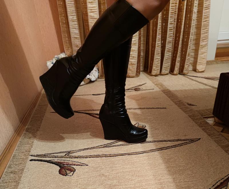 Сапоги европейка. Очень хорошая кожа с блеском. Мех цегейка, в голенище подкладка. В отличном состоянии. очень удобные и лёгкие. Производство Турция. Размер 39, по стельке 25