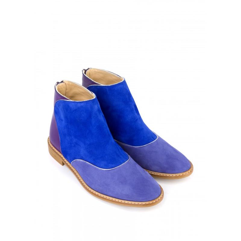 mellow yellow Ботинки ANTOINE Blue,синего и фиолетового цвета с плоским каблуком 2,5 см из гладкой кожи и замши. Высота голенища: 10 см. Длина стельки в 39 размере от самого начала носка до конца пятки 26.5 см. Модель сделана в Испании. СОСТАВ: Наружный: 100% замша, кожа Подкладка: 100% Кожа Подошва: 100% Синтетическая