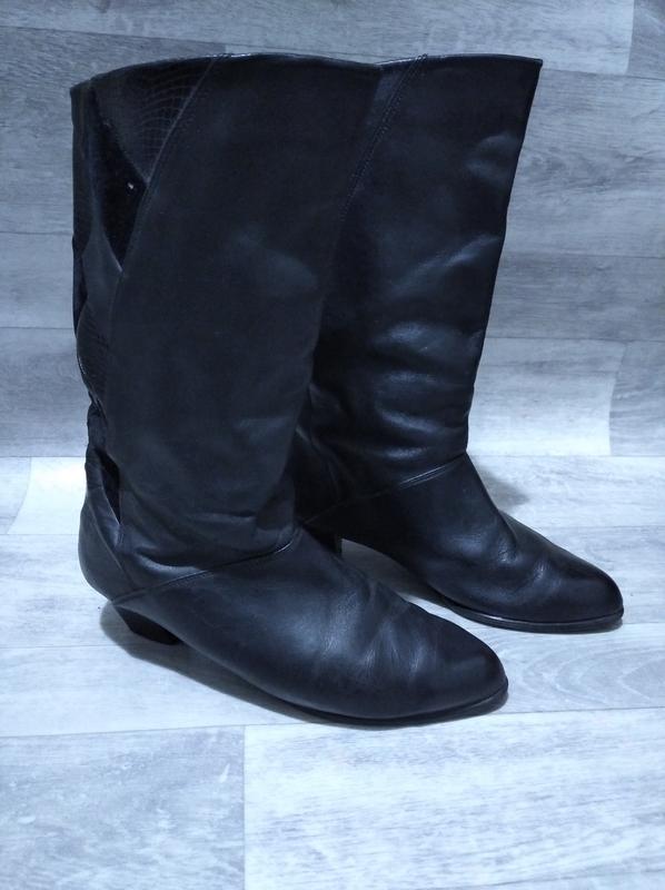 Сапоги осень/ весна черные кожаные женские. Размер 41. Длина стельки 26,5 см, высота каблука 5 см, высота сапога без каблука 28 см, по голени 19,5 см, нужно спереди проклеить.