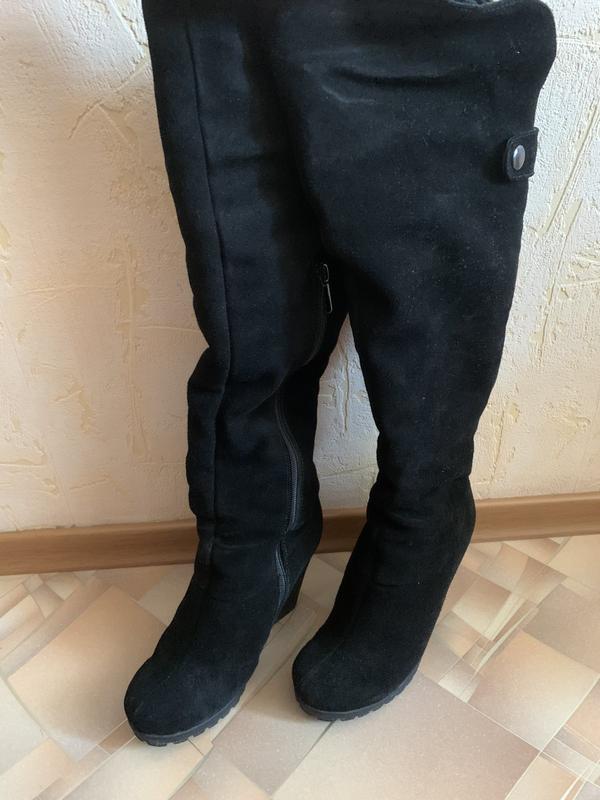Продам сапоги натуральный замш,набивная шерсть по всему голенище,молния сзади по всей высоте сапога, высота сзади 10 см.Удобная колодка ,очень теплые зимой.Одела один раз , продаю по причине не надобности ,поняла что на низком ходу удобнее лично мне . Замш качественный ,плотный ,дорогой замш .