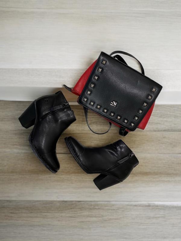 Новые ботильоны на среднем каблуке из натуральной кожи, удобная рукоять, красивая немецкая марка, лаконичный дизайн. Отлично смотрятся и с брюками/джинсами и с платьями. Снижки производят при покупке нескольких вещей.